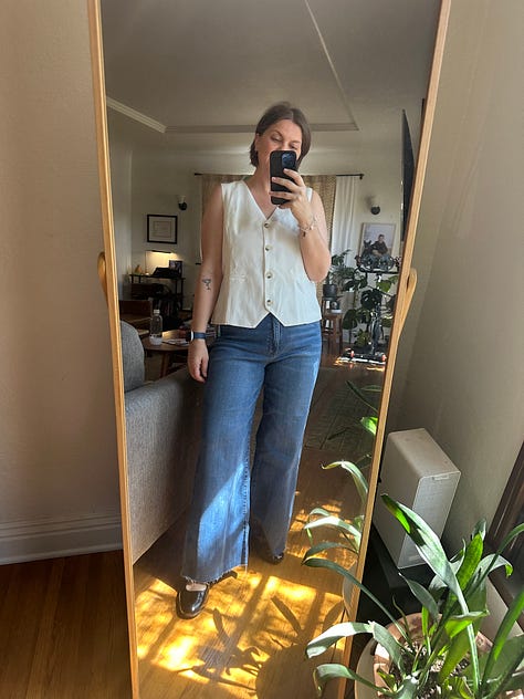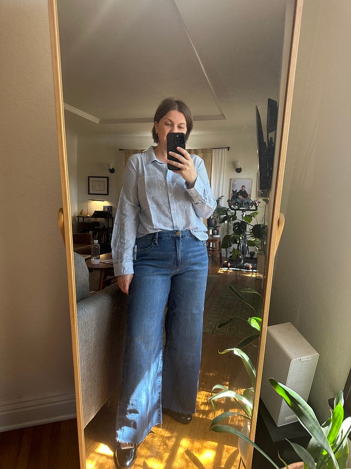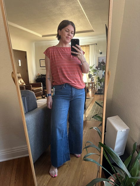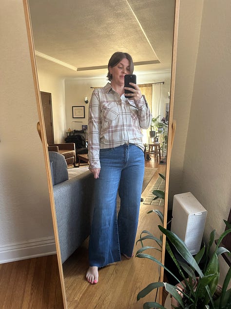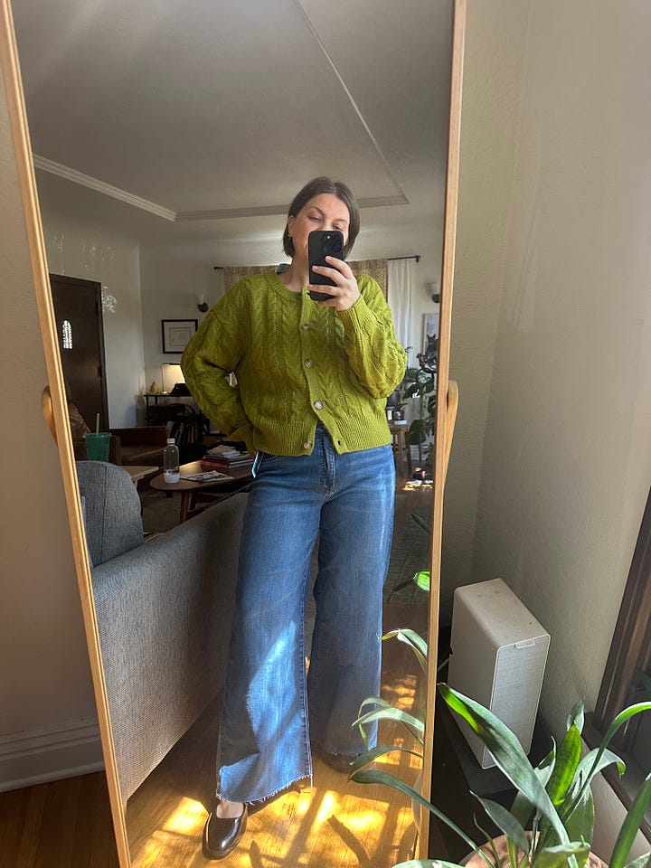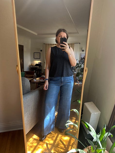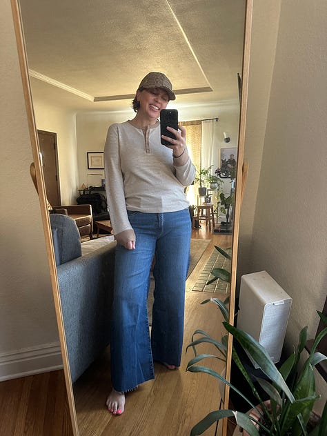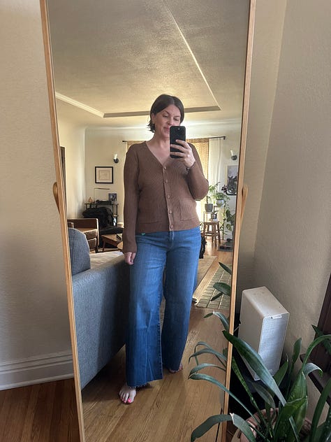 The jeans were a hit. I really liked them. But they felt a tinge too big and a lot of people told me they stretch with wear. The tops were also a success for the most part. The green sweater was the thing I was most excited for, but it ended up being made of synthetic fabrics and gave me hot heebies. I was overall really pleased with the looks my stylist chose. Even the shoes were really soft-soled and comfy.