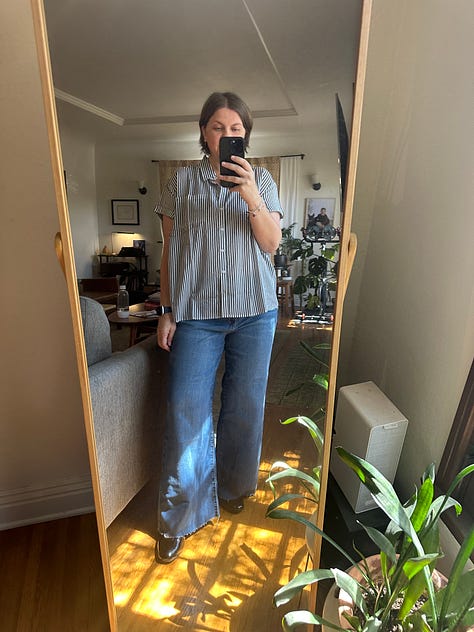 This month has proven to be a mix of really great and really challenging. In turn, my coping mechanisms have been all over the place. I spent enough time doomscrolling that I had to physically go put my phone in another room away from my body. And that allowed me to dive into some puzzles and read a little bit and catch up on shows. And yes, even my old go-to — some shopping. I haven’t bought my 5th item yet, but I will say my senses are on high alert to find something to scratch this itch. Since I don’t really have anything specific on my hunt list, I decided to try a couple of those style boxes! I took some style quizzes (which your girl lives for anyway) and let someone else do the choosing for me! I tried on the outfits for Instagram, but ICYMI, I’ll post them here as well.